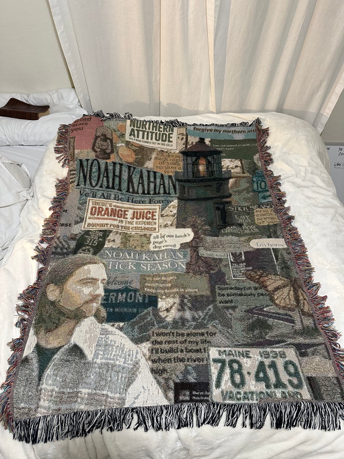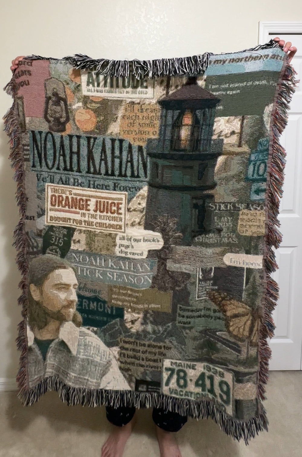 Inspired by Noah Kahan’s raw storytelling and Vermont roots, this woven blanket brings warmth, comfort, and a sense of home—made for quiet nights, slow mornings, and moments that feel familiar.